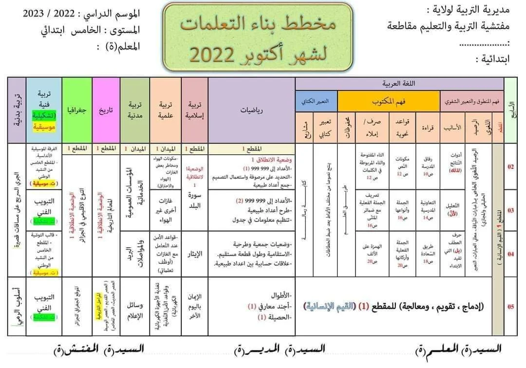 السَــلامُ ع ـليكُــم ورح ـمــة الله وبـَـركــَاتـُـه صبـــآح | مسـآء ـالخـيرآت جميـعــآ أعــضآء و زوآر أهـلآ ومرحبـآ بكم أســعد الله أوقـآتكم بـ كل خير نقدم لكم ~.. مخطط بناء التعلمات لشهر أكتوبر وفقكم الله from منتدى اللمة الجزائرية