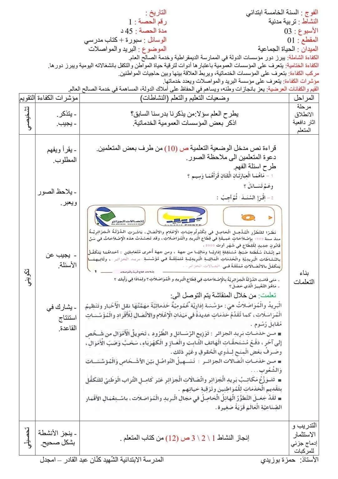 السَلآْم عَلْيُكّمٌ وٍرٍحَمُةّ الله وٍبُرٍكآتُهْ للسنة الخامسة مذكرة البريد و المواصلات لمن يبحث عنها. يالتوفيق from منتدى اللمة الجزائرية